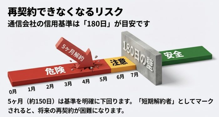 5ヶ月(約150日)での解約は、この180日ラインを明確に下回ってしまうため、リスクが非常に高いと思います