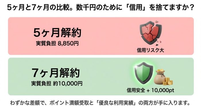 4,000ポイントの取りこぼしを防ぎ、ブラックリストのリスクを回避し、将来の契約の選択肢を広げる。