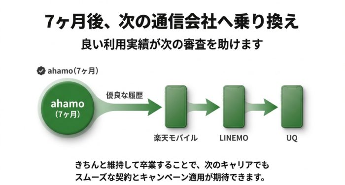 ahamoでしっかりとした利用実績を作ったあなたなら、次のキャリアの審査もスムーズに通るはずです。