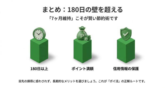 ・180日の壁を超える7ヶ月維持こそが、ポイ活ユーザーの正解ルート。