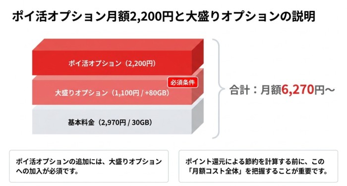 ポイ活オプション月額2,200円と大盛りオプションの説明