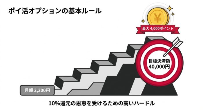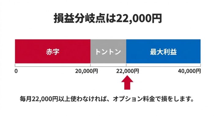 ahamoのポイ活オプションを契約する際、最も意識すべきなのは「損益分岐点」です。このオプションは月額2,200円という、決して安くない固定費が発生します。この2,200円を上回るポイントを獲得できなければ、実質的にはただドコモに寄付をしているような状態になってしまいます。では、具体的にどれくらいの決済が必要なのか、改めて整理してみましょう。