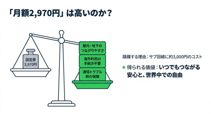 サブ回線に月額2,970円(税込)を払うのは、確かに家計へのインパクトがありますよね。
