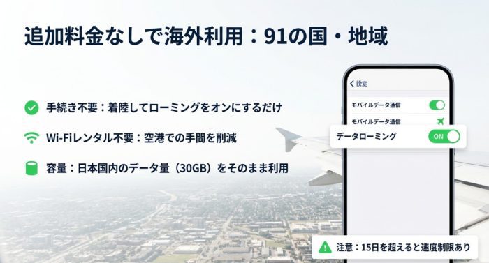 - 30GBへの増量や海外ローミング無料など独自のメリット活用術