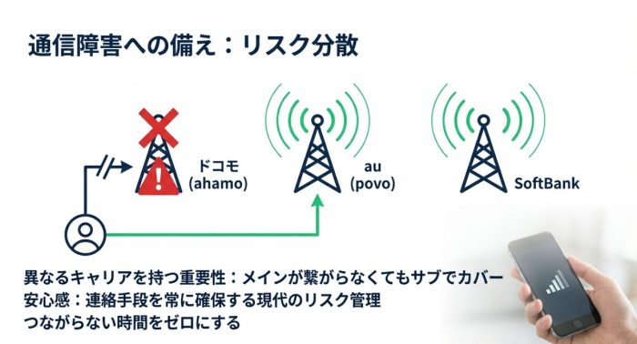 povoやソフトバンクとの併用で通信障害に備える