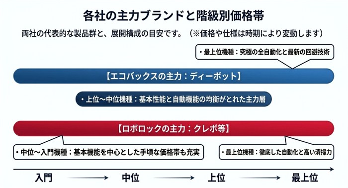 エコバックス・ロボロックともにこのクラスのモデルを展開しており、どちらが優れているかは機種ごとの比較が必要です。