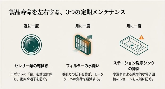 近年の「全部入り」モデルは、ステーション側のメンテナンスが寿命を大きく左右します。