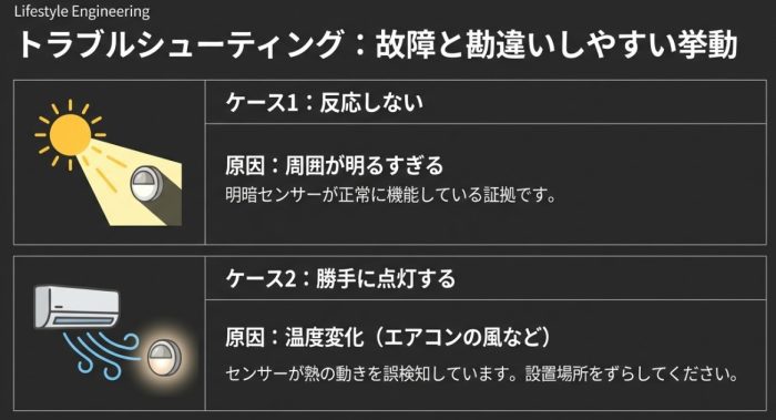「センサーが反応しない」という時は、まず周りの明るさを確認。