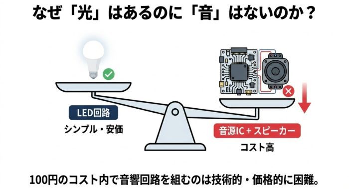 なぜ光るライトはあるのに、音が鳴るタイプはないのか不思議ですよね。
