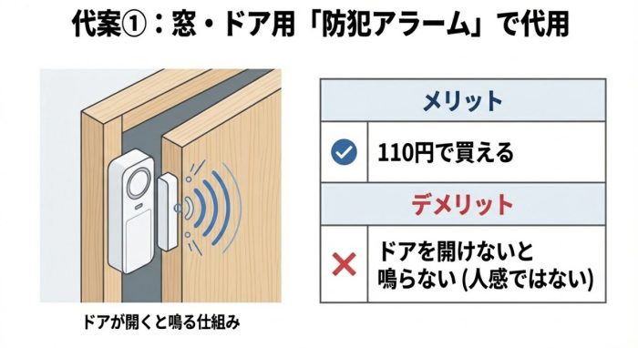 ・「音が鳴る」機能が必要なら、窓用アラームでの代用を検討する