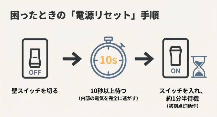 器具の初期点灯動作と電源リセットの手順