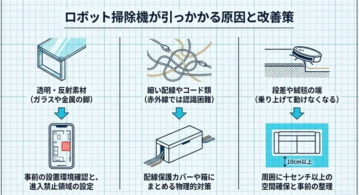 ロボット掃除機が引っかかる原因と改善方法