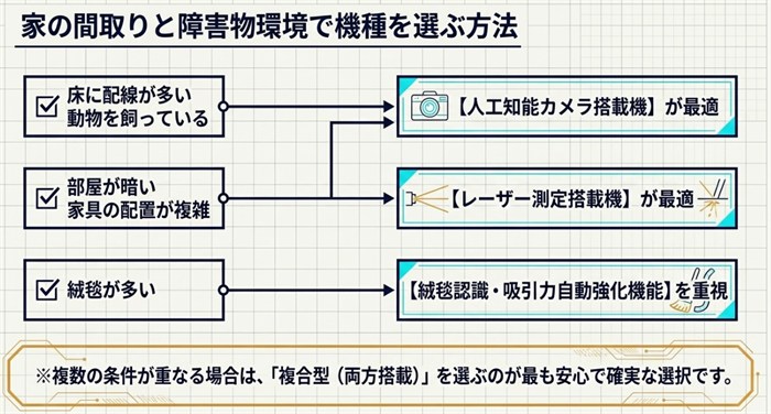 家の間取りと障害物環境で機種を選ぶ方法