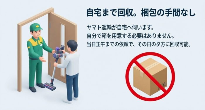 しかも、ヤマト運輸さんが自宅まで回収に来てくれるので、自分で箱を用意して梱包する手間もほとんどありません。
