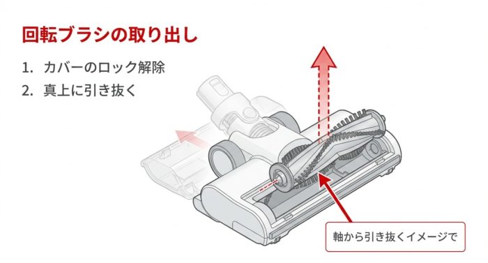 カバーが外れたら、あとは中の回転ブラシを上に持ち上げるだけで、簡単に取り出すことができます。