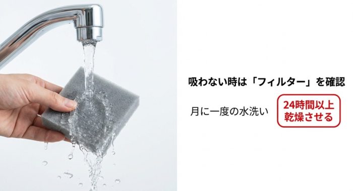 フィルターの目詰まりと水洗いメンテナンス