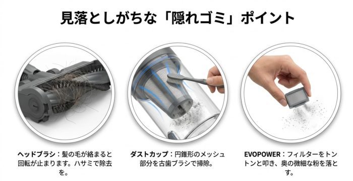 EVOPOWERの吸引力が落ちた時の特殊な清掃手順