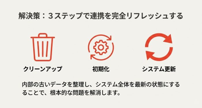 単なる設定のやり直しだけでなく、システム内部の整合性を整えるためのちょっとした裏ワザまで紹介していきますね。
