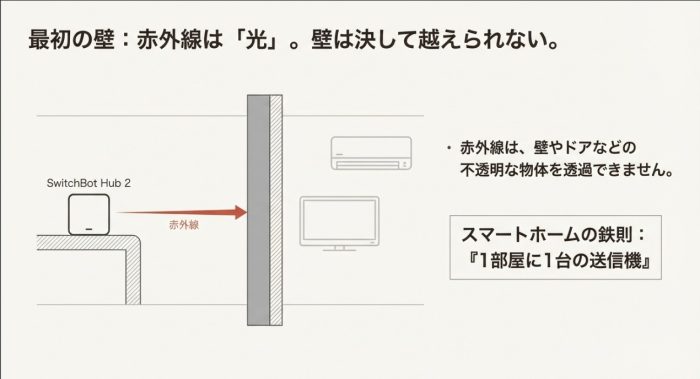 赤外線は壁を透過しない!1部屋1ハブが必要な物理的限界