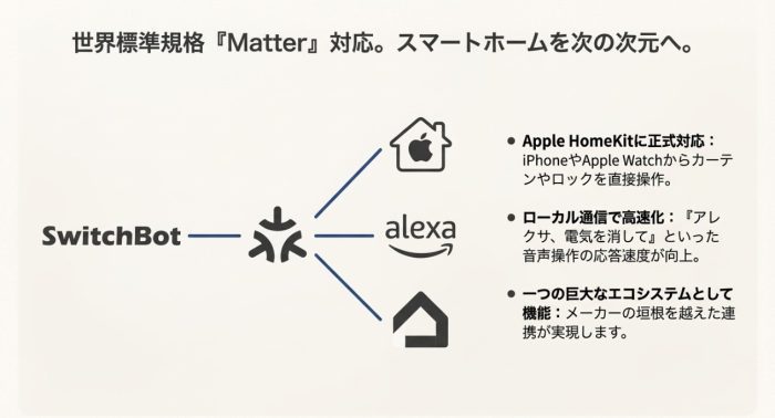 ※より詳細な技術仕様や最新のMatter対応状況については、必ず公式のサポートドキュメントを確認するようにしてくださいね。