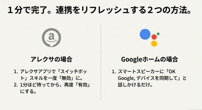 • アレクサやGoogleホームの連携は定期的にリフレッシュする