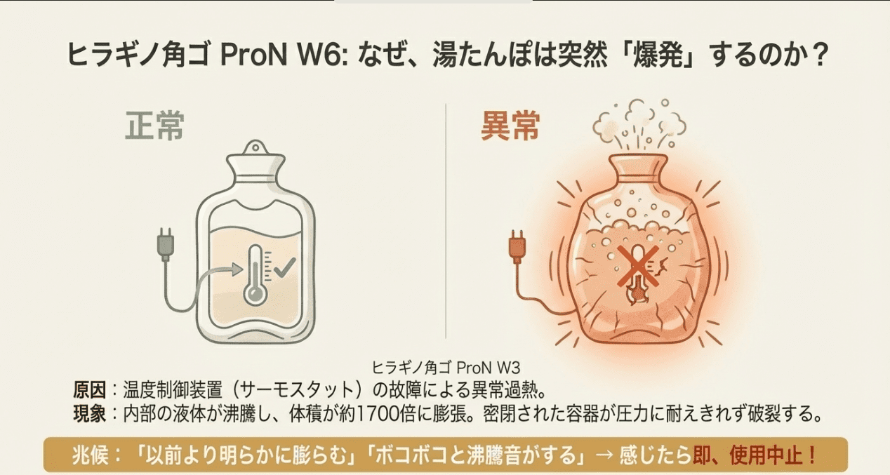 充電式湯たんぽで最も衝撃的な事故が、製品の「破裂・爆発」です。