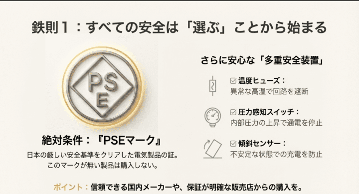 購入前にチェックすべきPSEマークと多重安全装置